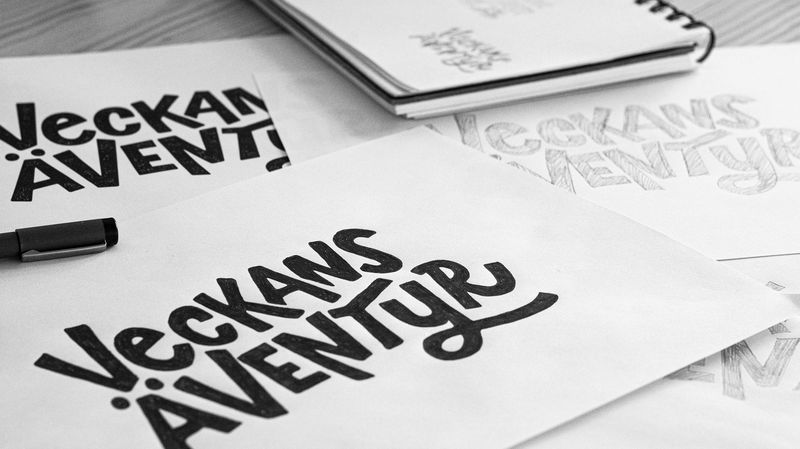 För de andra bokstavsillustrationerna, Veckans äventyr och Äventyrsveckan, användes samma process. Det ursprungliga utkastet var aningen för naivt eller barnsligt i uttrycket – men efter små finjusteringar lyckades vi träffa rätt i ton och känsla. Dessa bokstavsillustrationer används till Friluftsfrämjandets digitala nyhetsbrev.