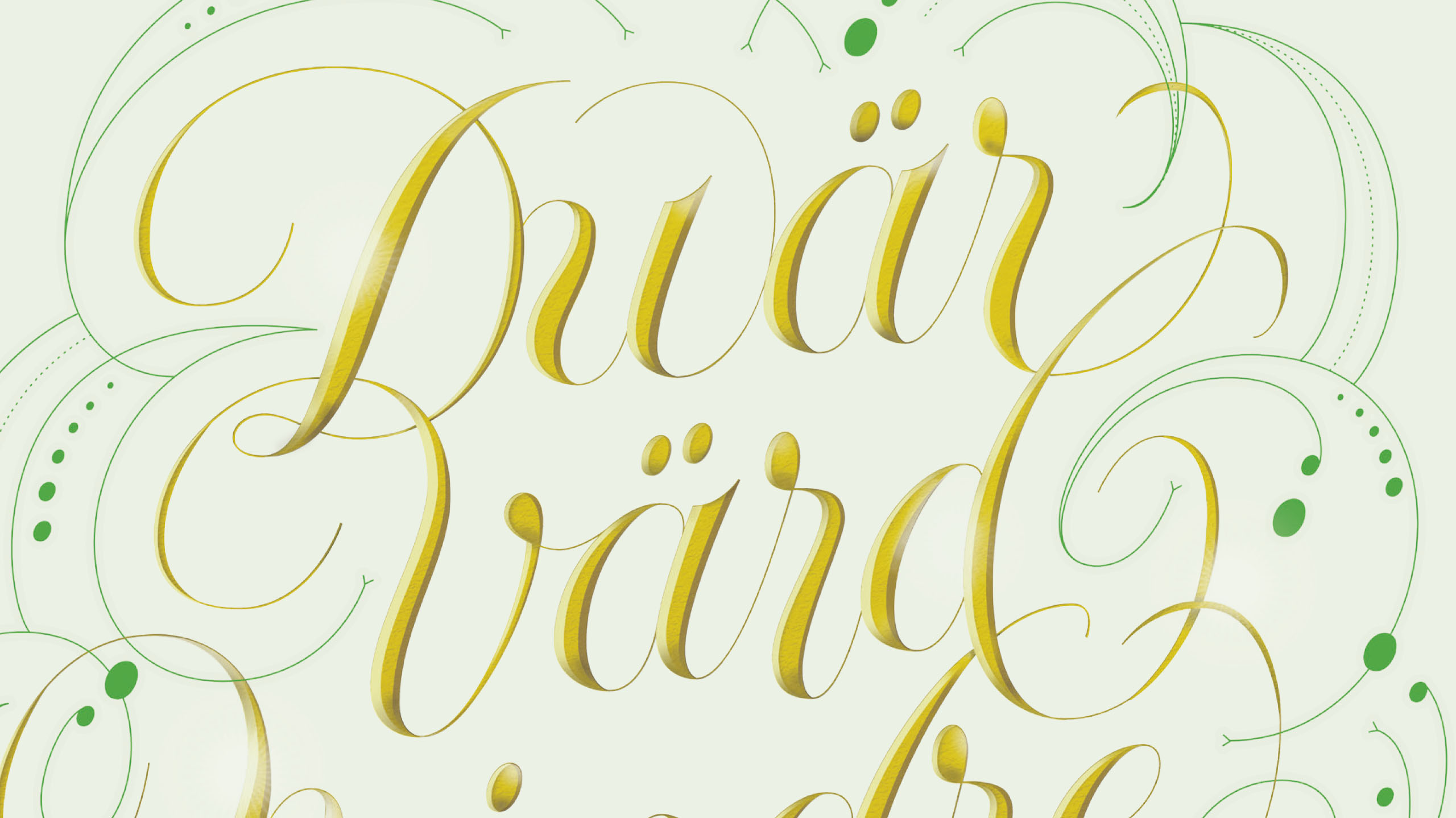 Uppdraget Den prisbelönta svenska kommunikationsbyrån Jung Von Matt behövde en bokstavsillustration till deras kund Lendo – banklånsversionen av PriceRunner. Utan kostnad jämför Lendo bankräntor för att hjälpa dig hitta den lägsta möjliga räntan. Huvudbudskapet för annonsen är Du är värd mindre än du tror. Jung Von Matt vill att annonsen och designen ska flirta lite med typiska motivationsposters av slaget Make today great och Carpe diem, men med en tvist. Jag fick ett par inspirationsbilder för stilriktning och målsättningen att förmedla en känsla av glädje, kvalitet och handritat. Jung Von Matt ville också att bokstavsillustrationen skulle bilda en form och ha grönt och guld som huvudfärger.