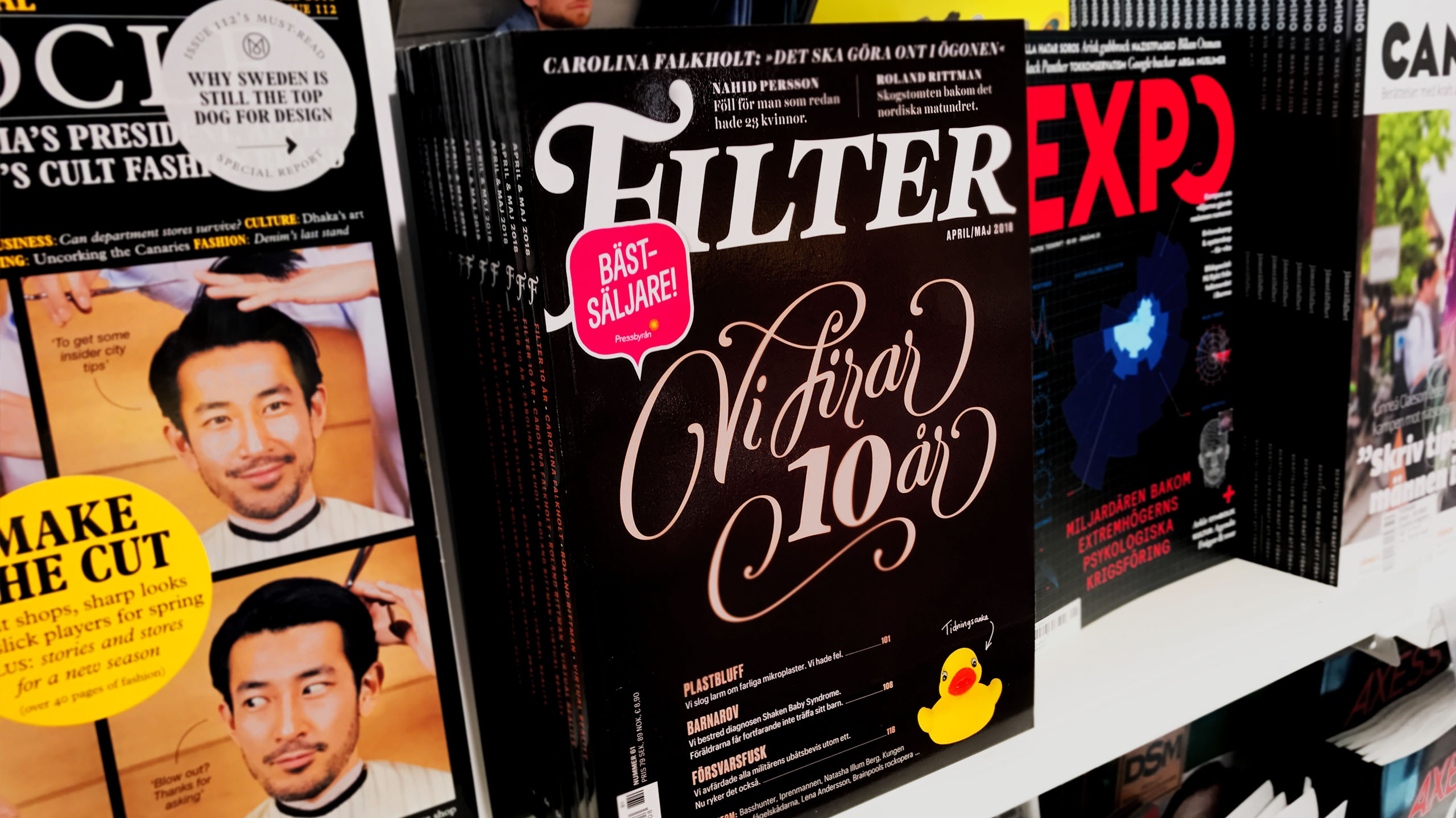 Uppdraget Jenni Carström, Art Director på prisbelönta Magasinet Filter (vinnare av t ex Stora Journalistpriset, Guldspaden och Årets Tidskrift), behövde ett handritat emblem för att uppmärksamma deras 10-årsjubileum som magasin. De önskade också årtalsvinjetter i samma stil som emblemet.