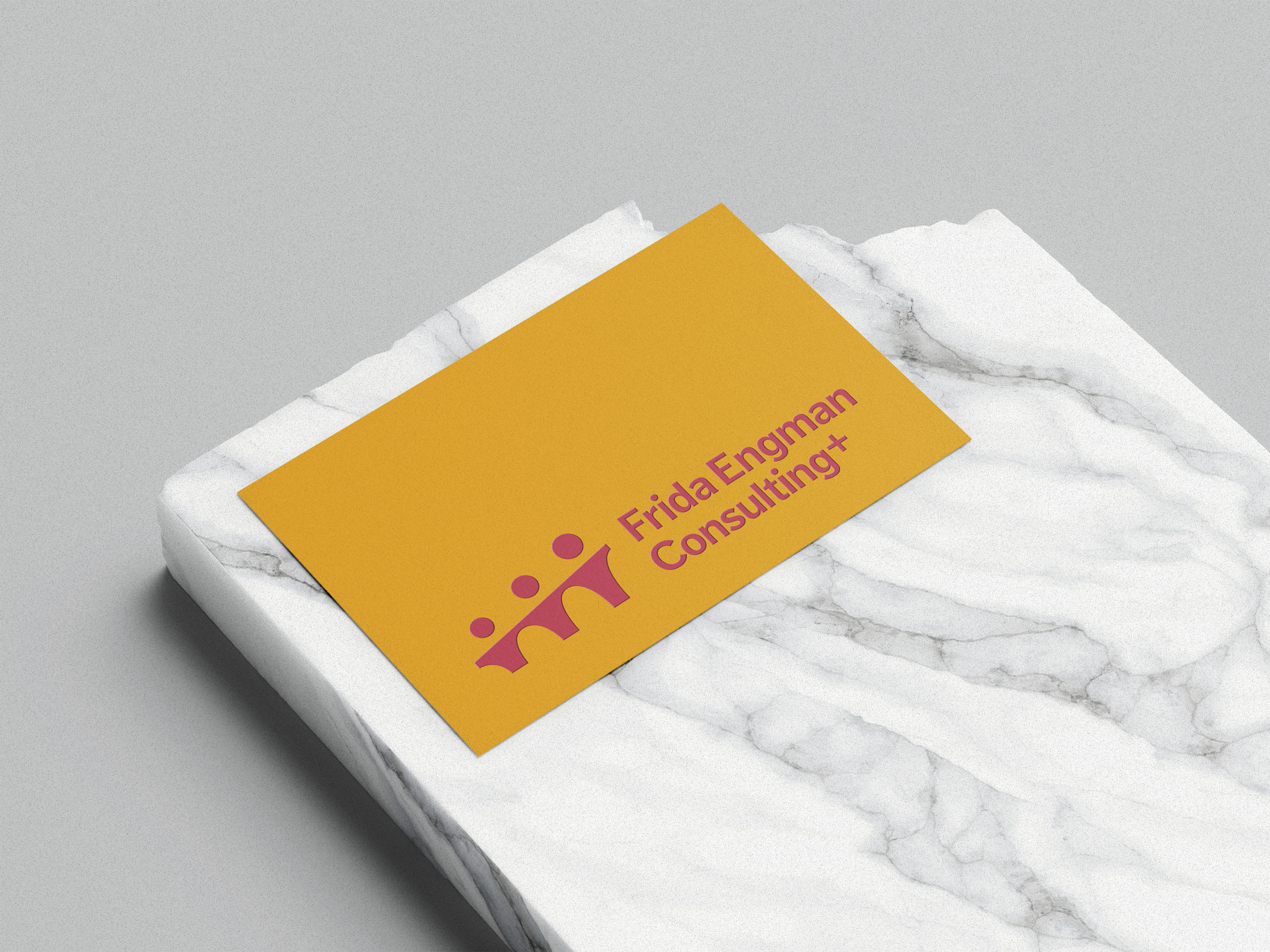 Uppdraget Skapa en visuell identitet för Frida Engman Consulting+ som skapar genuina och bestående förändringar hos ledare, företag och anställda. Fridas metod tar tillvara på individen eller teamets resurser och ger dem kunskap och verktyg för att skapa långsiktigt hållbara, engagerade medarbetare och en mer effektiv organisation. Frida fungerar rent praktiskt ofta som länken mellan ledare och team. Viktiga värdeord är: genuint, flow/arbetsglädje, motivation och utveckling. Den visuella identiteten kommer primärt att användas på hemsida, presentationer, visitkort, offerter samt LinkedIn.