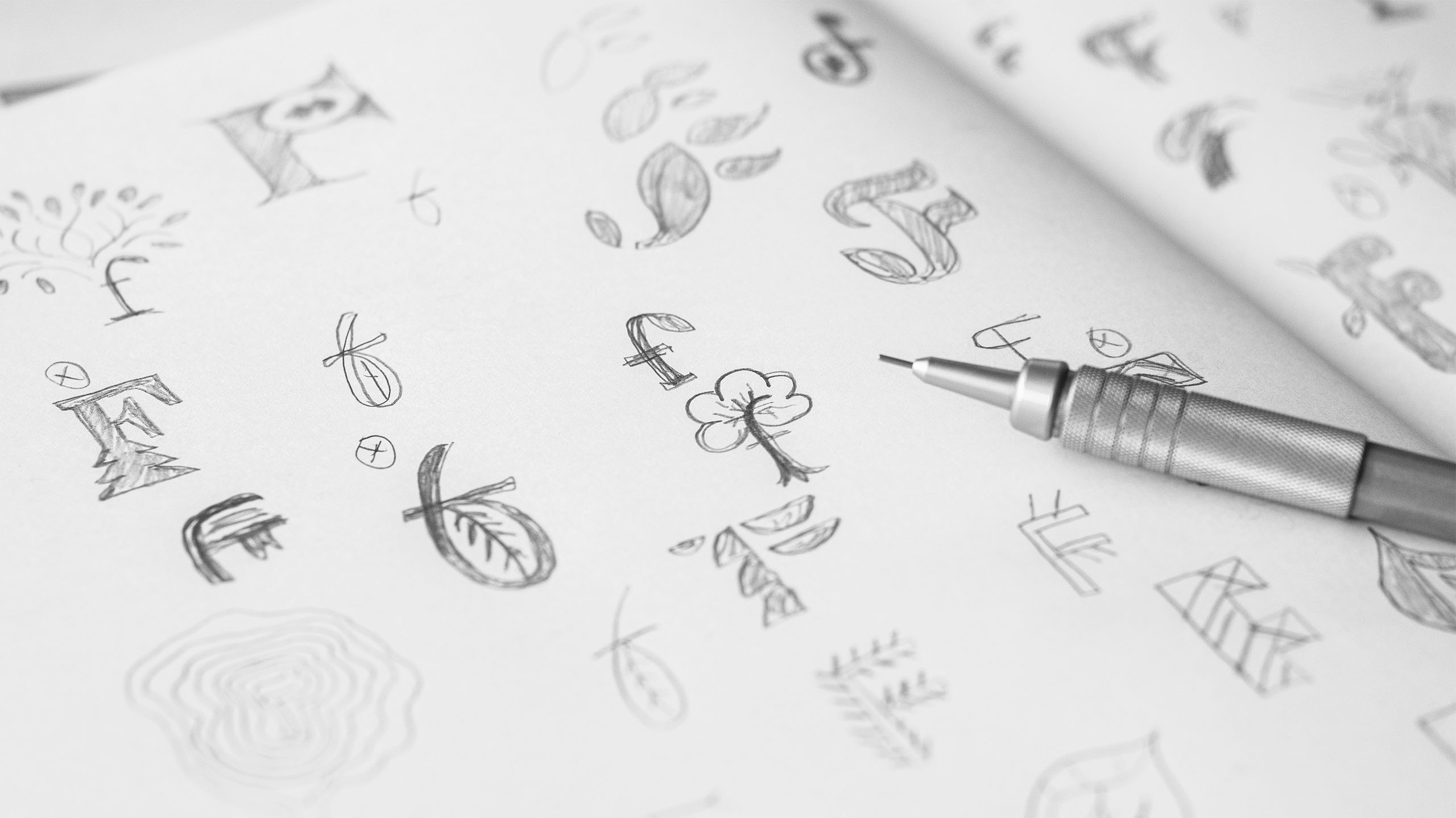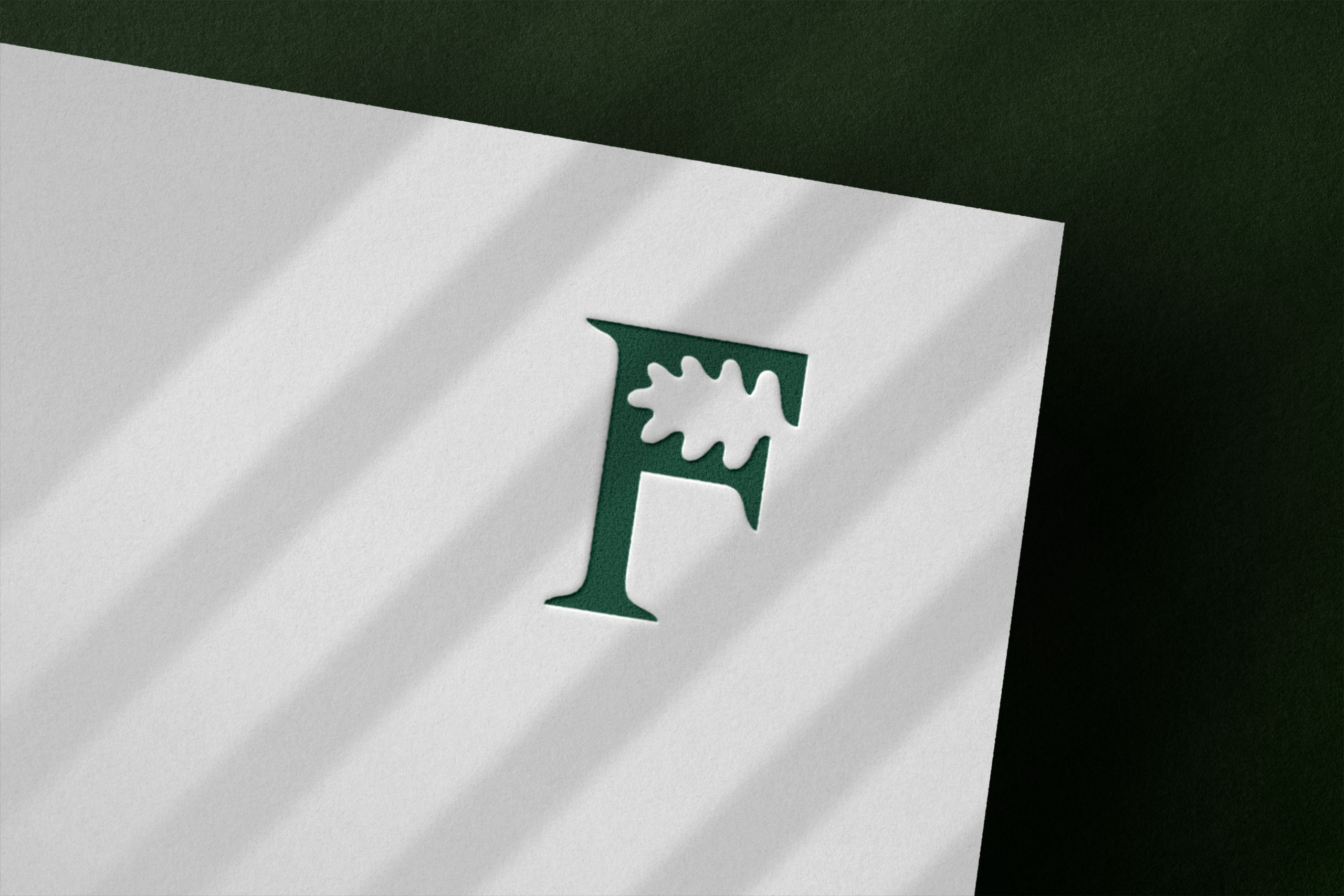 Lösningen Efter många rundor med pennan digitaliserades de bästa handskisserna. Och sedan presenterades tre förslag för Isabel på The Forest Press. Den valda lösningen består av ett versalt F där det gömmer sig ett eklöv i det håliga utrymmet i bokstaven. Den kompletta logotypen består av varumärkesnamnet satt i specialritade bokstäver – där symbolen blir inbakad som ett element istället för en separat symbol. Lösningen särskiljer The Forest Press gentemot sina viktigaste konkurrenter.