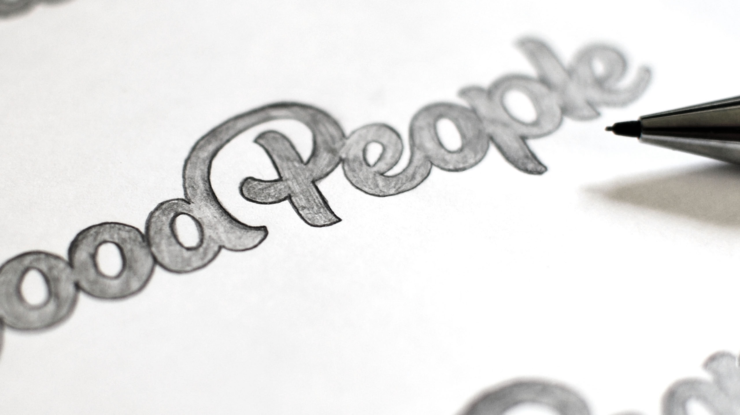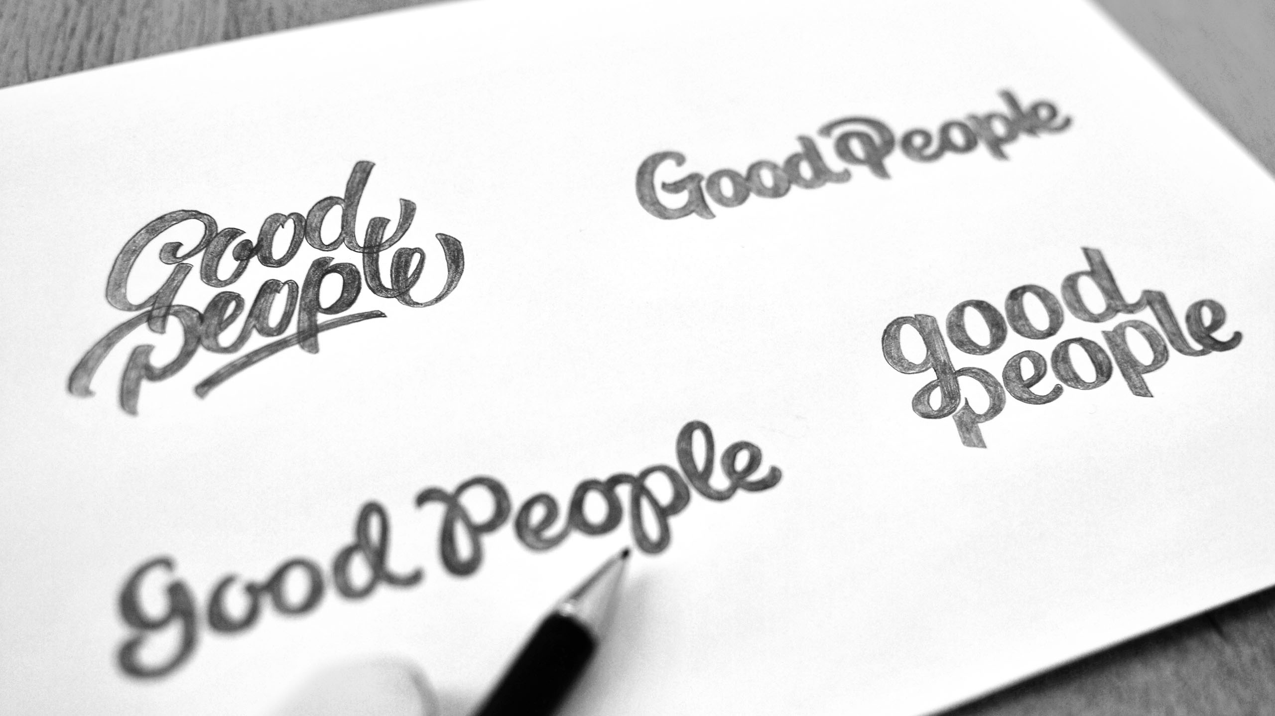 Handritade skisser till Good Peoples logotyp.